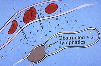 - E.g. inflammation of lymphatics seen in filariasis results in lymphoedema of scrotum & legs.