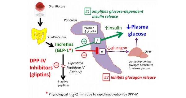 - Reduced hepatic glucose production – By antagonizing glucagon’s ability to generate cAMP in Hepatocytes.
