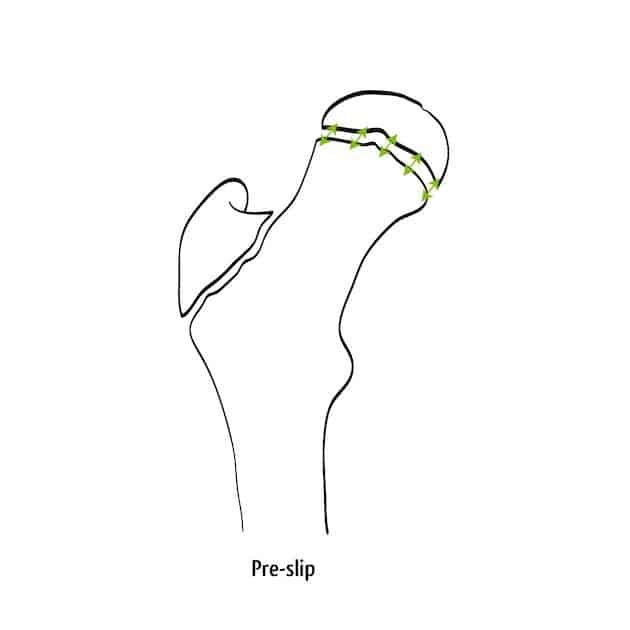 - Slippage of the epiphysis “ice cream falling off of the cone”