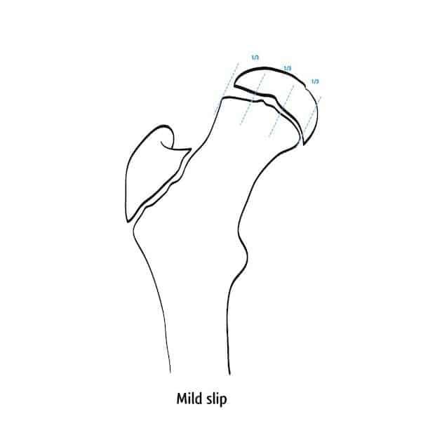 - Characterized by a displacement of the capital femoral epiphysis from the femoral neck through the physeal plate.