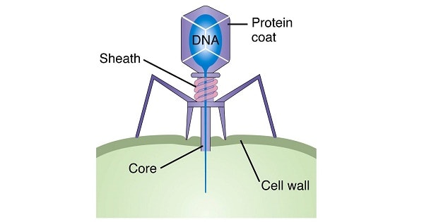 There are two types of bacteriopnages-”lytic” and “temperate.” The distinction is made according to the life cycle of the bacteriophage. Upon entering a bacterium, lyric phages produce phage nucleic acids and proteins, assemble many new phage particles, lyse the cell, and release the progeny phage. Temperate phages, on the other hand, can penetrate the bacterium and enter a dormant state called “lysogeny’ in which most viral genes are repressed. Bacterial functions remain active and the bacterium is not harmed. Some dormant phages replicate as plasmids, while others, such as phage lambda, become integrated into the host genome as “prophages.” The prophage DNA is replicated along with the host DNA as the bacterium grows and divides.